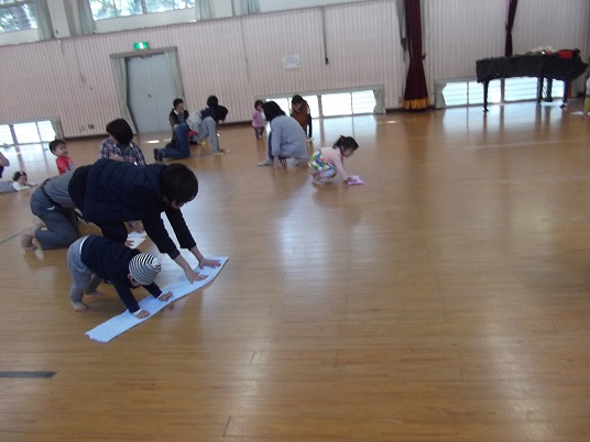 雑巾がけレースをしたり、床遊びを楽しみました。