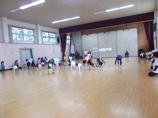 2階の板張りのスタジオでは、雑巾あそびを2回行いました。