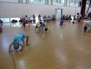 大集会室で、いつでも裸足になり少しずつみんなのまねをしながら