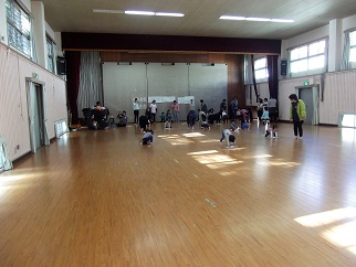 かていかんの大集会室に初参加5家族計32家族の皆さんと一緒にあそびました。