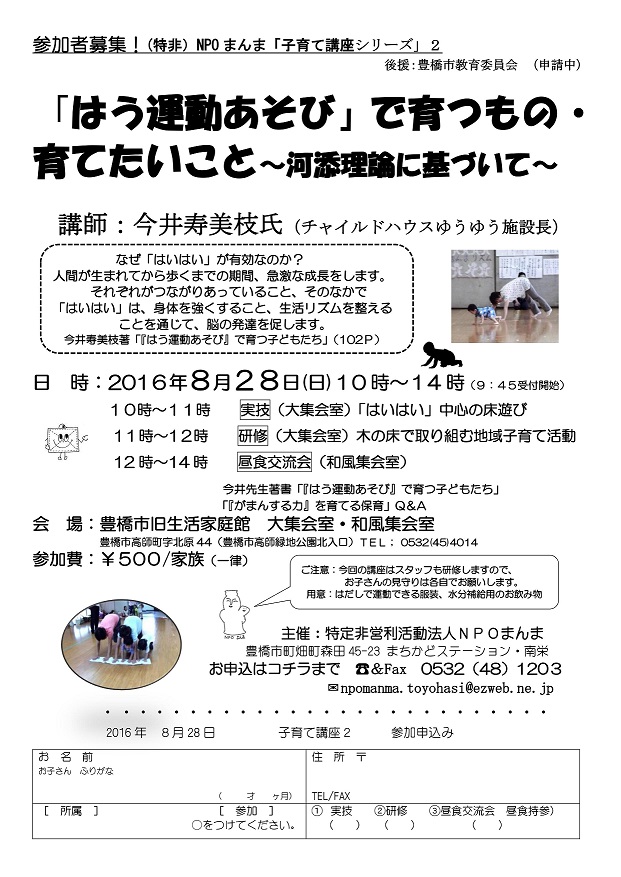 NPOまんま「子育て講座シリーズ」2 ご参加ください!