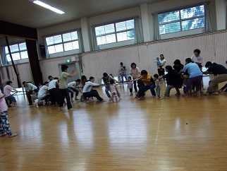 リズムの最後には、運動会で活躍する「綱引き」も2回体験。