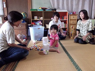 ママは、スタッフ(今日は、ホームスタートのオーガナイザー2人)とおしゃべり。