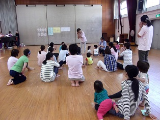 リズム終了後、わらべうた ♪むしかご♪ と大型絵本で楽しみました。