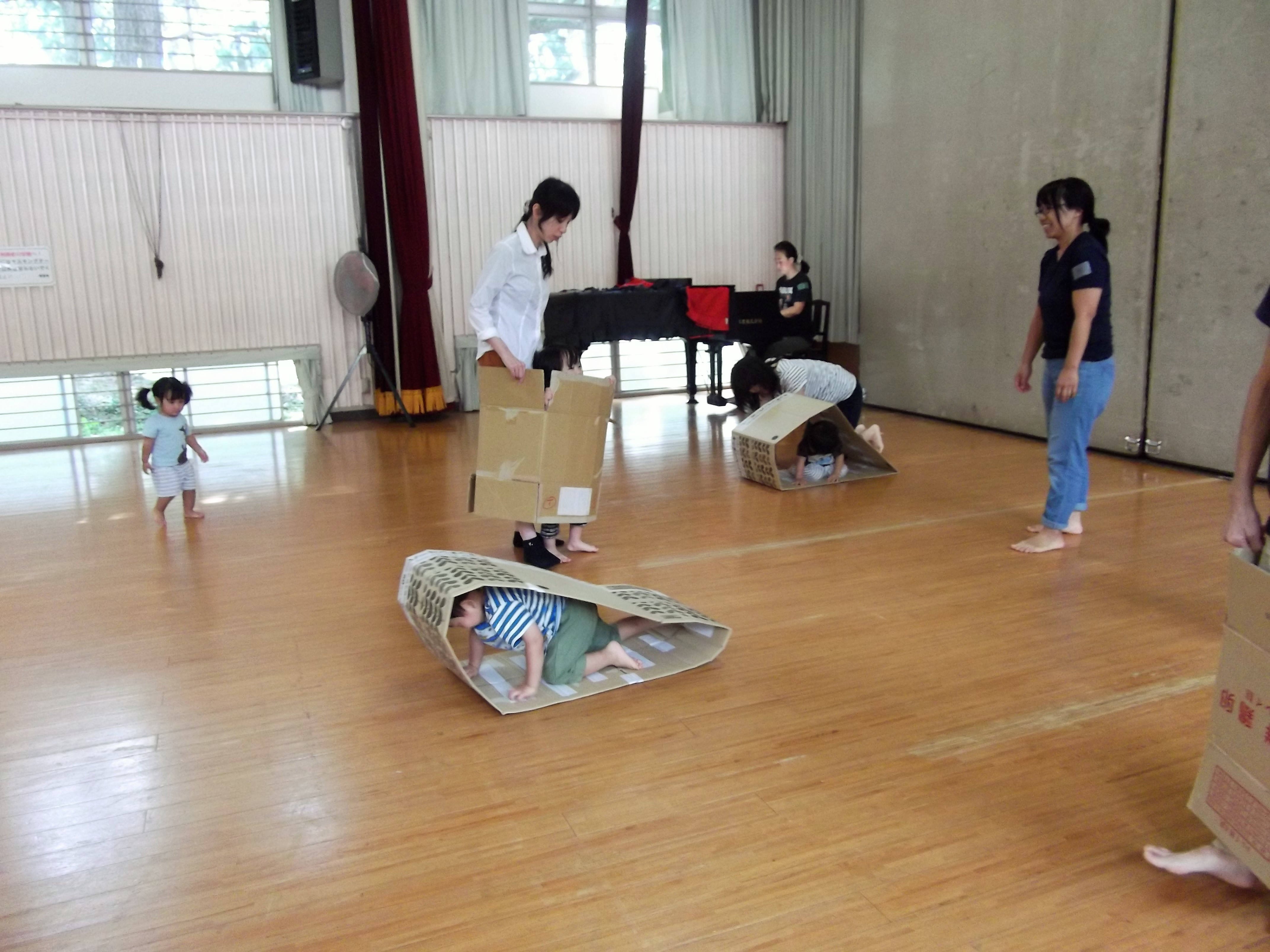 人間トンネルくぐりや雑巾がけ。段ボール遊びも大人気。いっぱい遊んだ後で