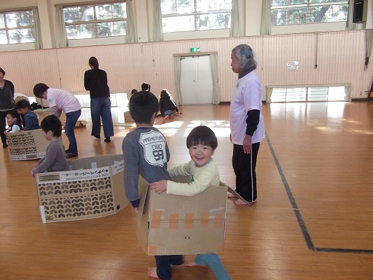 一緒に遊びに来てくれて、体育館の板の間をいっぱいに