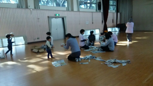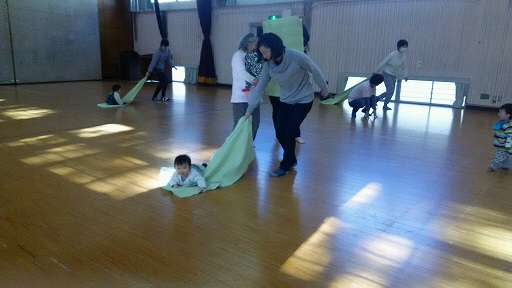 子どもたちも十分にはいはいしたり、布スキーをしたり。