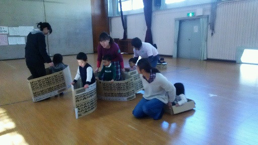 「どんどんばしわたれ」段ボールくぐり、スキーで