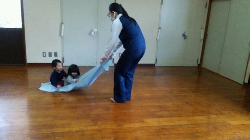 はいはいしたり、布縄の上を渡ったり、リズム遊びで