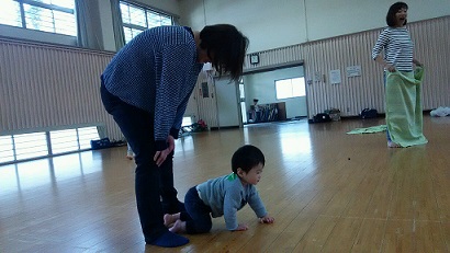 遊びの要素を取り入れて楽しくハイハイ。