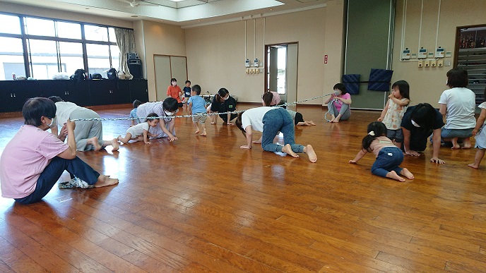 リクエストがあり、みんなで板の間いっぱいに遊びました。