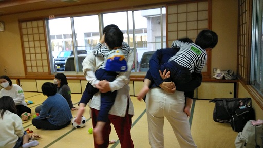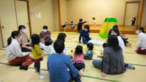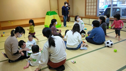 ママたちがおしゃべりしている間、みんな元気に和室の中で遊びます。