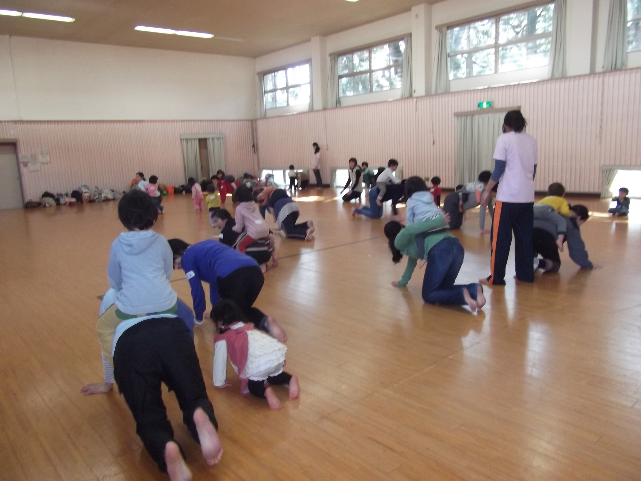 なべなべそ~こぬけ 集団あそびも、手押し車も、みんな真剣です。