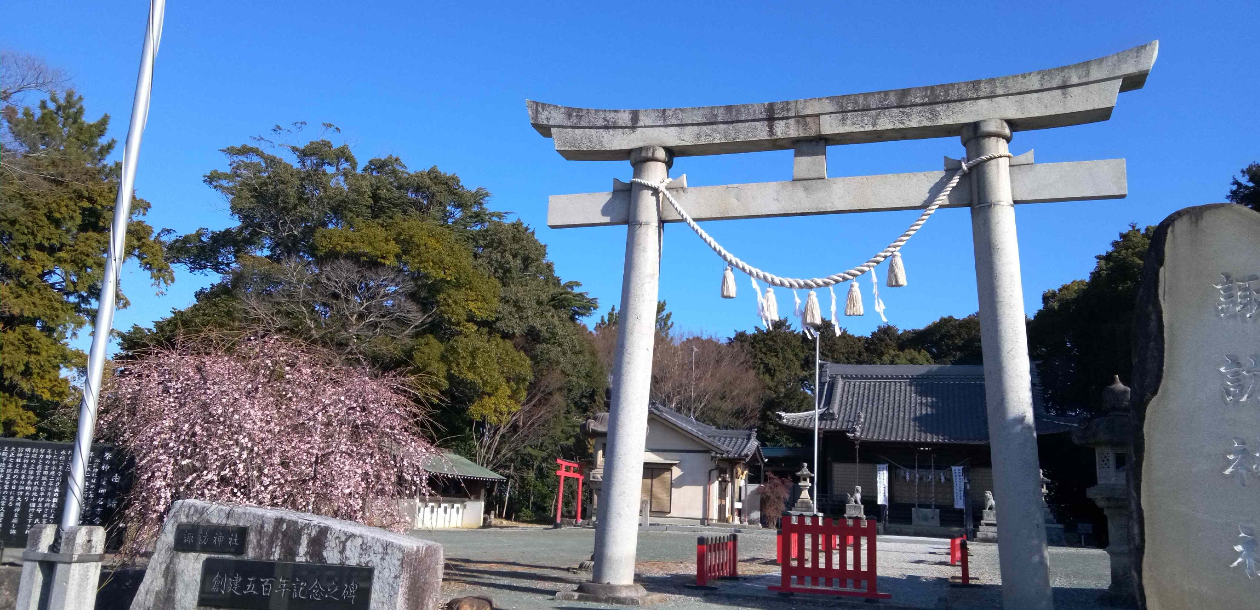 山田諏訪神社のしだれ梅が咲きだしました。