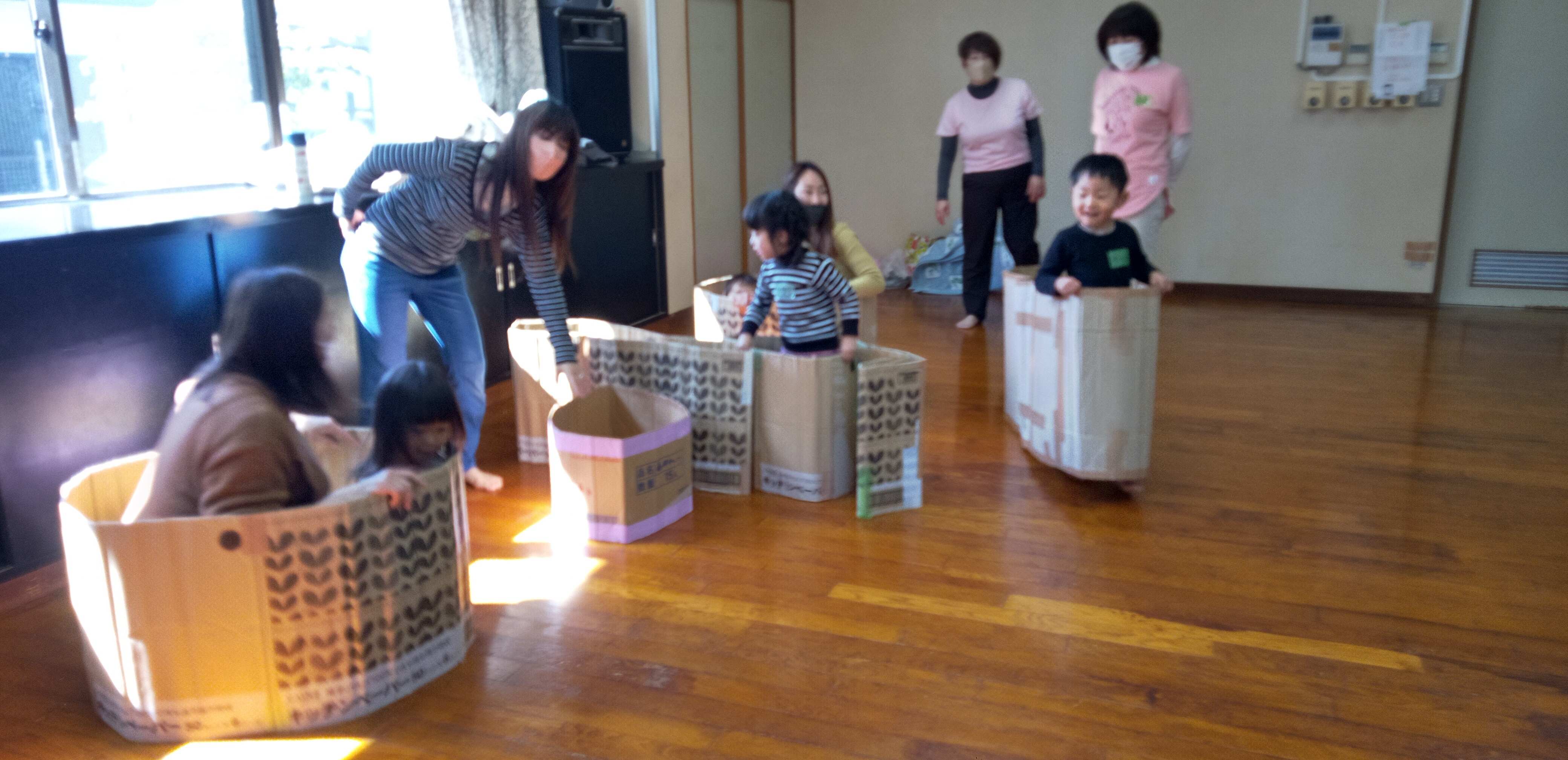 段ボール遊びも次々と