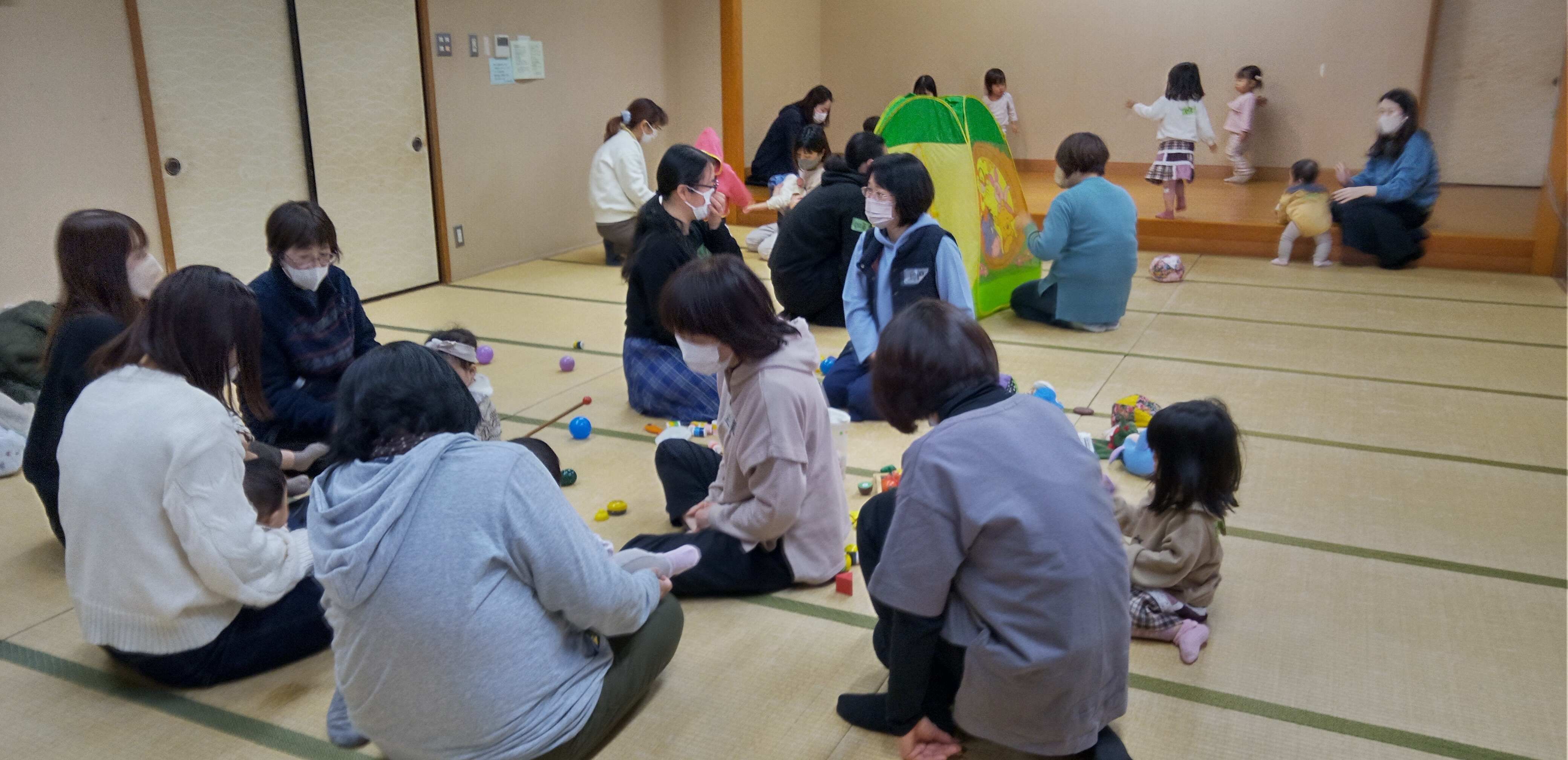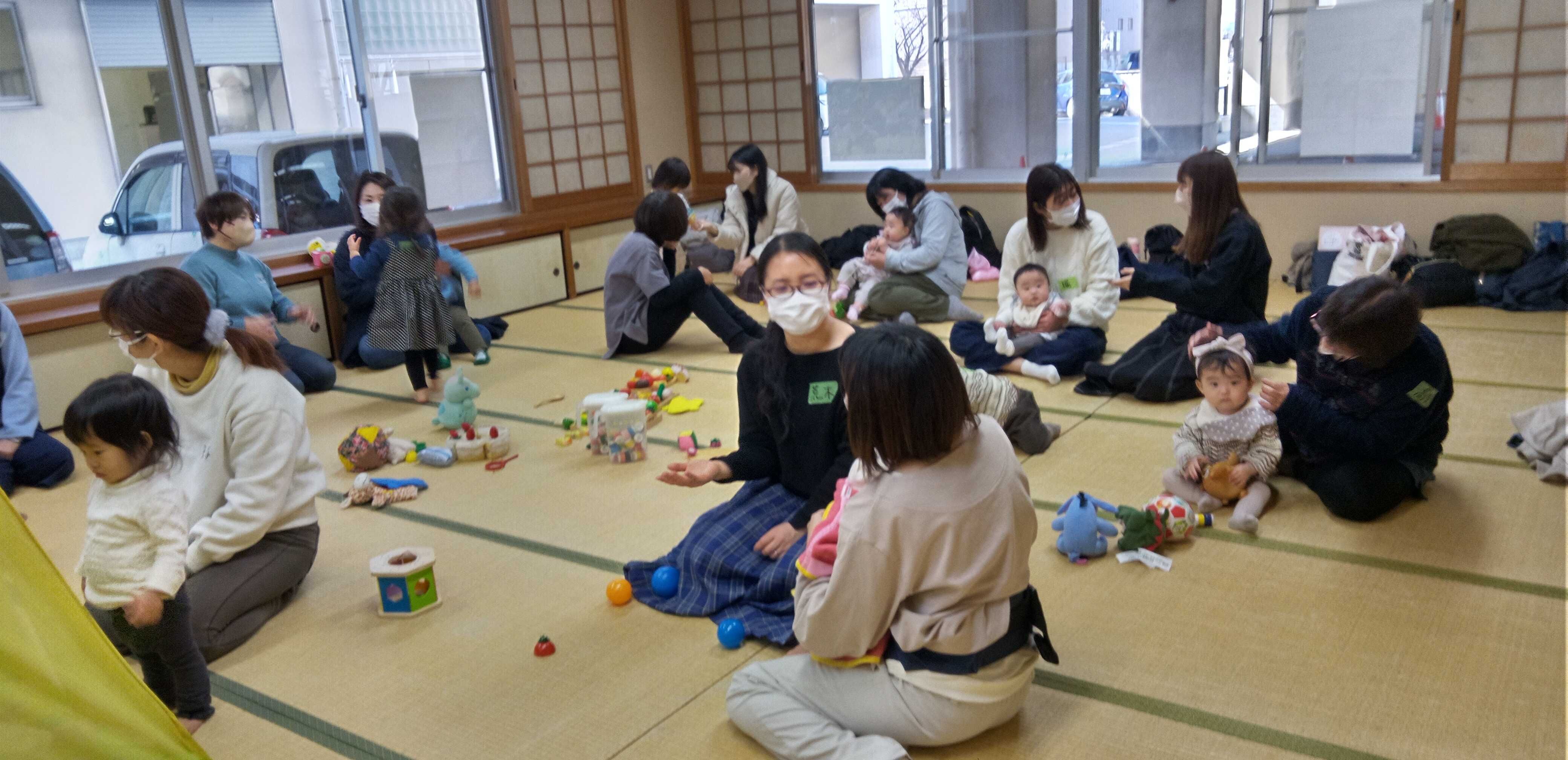 つつじ校区市民館の和室は大賑わい。