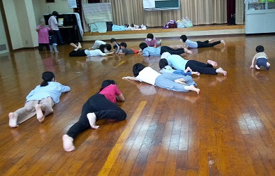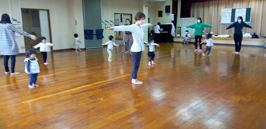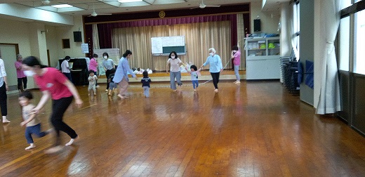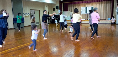 山田公民館の板の間でリズム