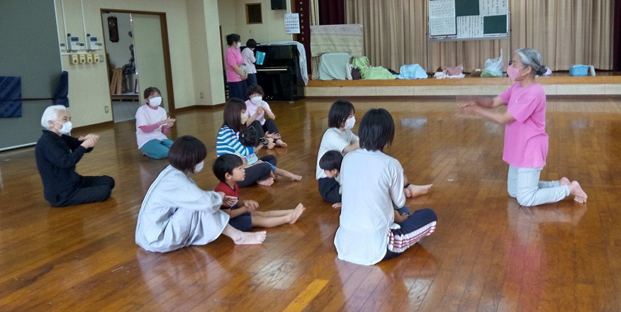みんなで輪になってわらべうた遊び