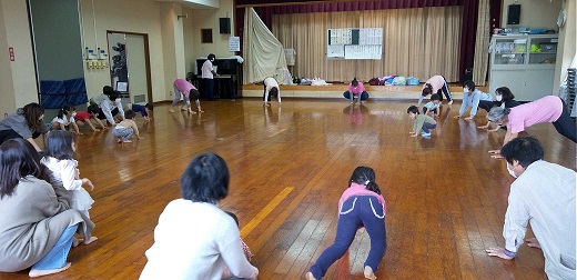 山田公民館の板の間に響きます。