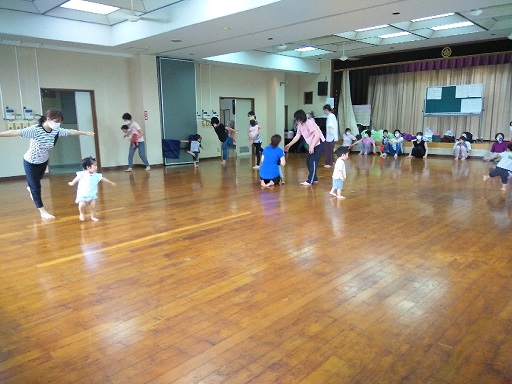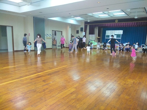 子ども17人、大人14人の14家族の皆さんとリズムです。