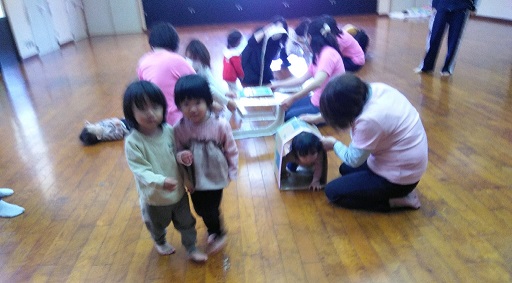 ハイハイ遊びを中心にリズム遊び・手遊び・段ボールあそびなど