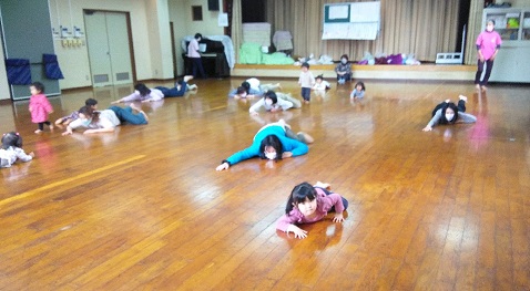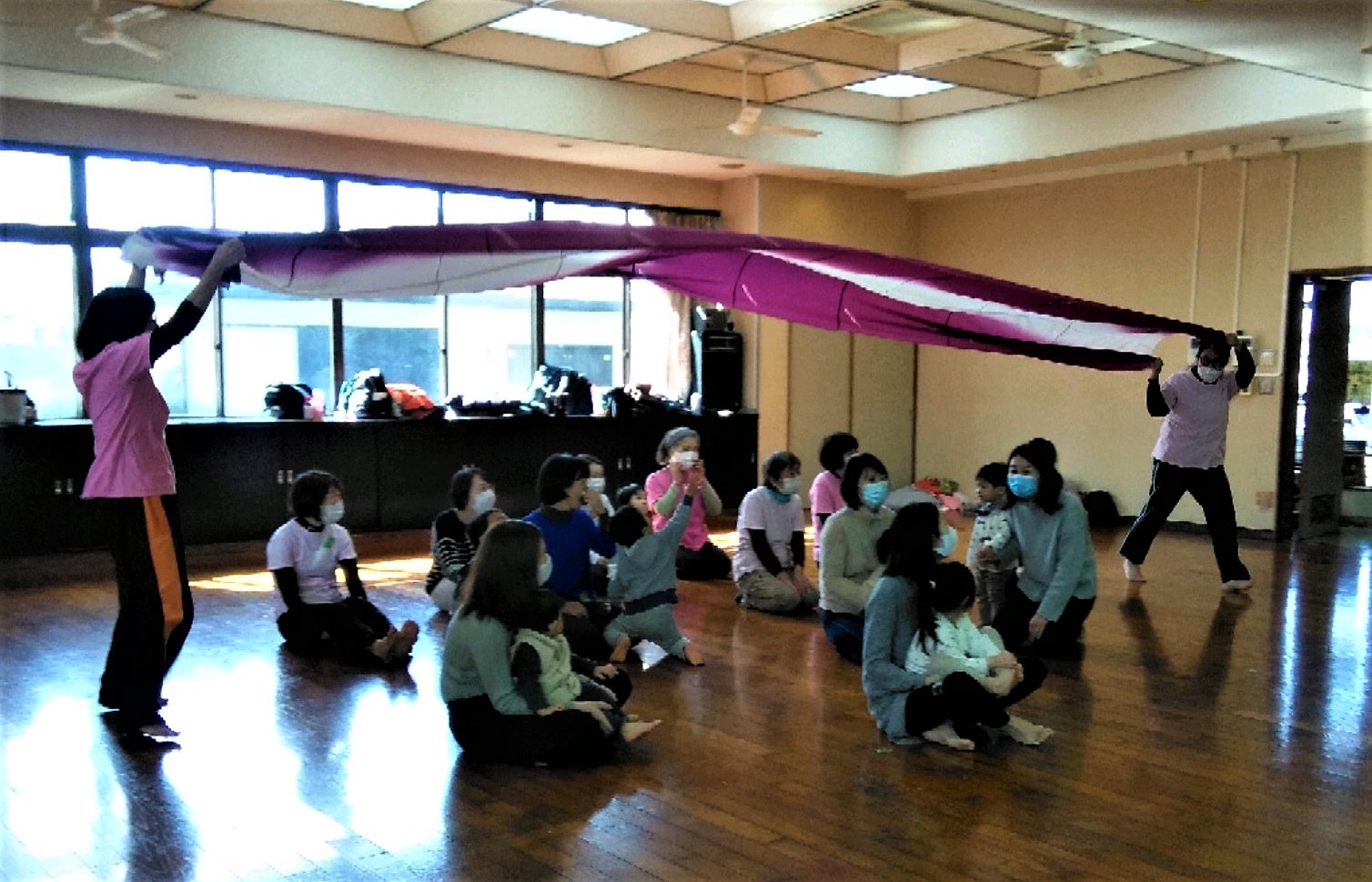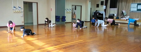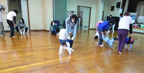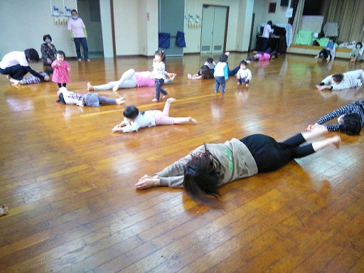 ママたちも、リズムで身体を伸ばし、少し疲れるけれど