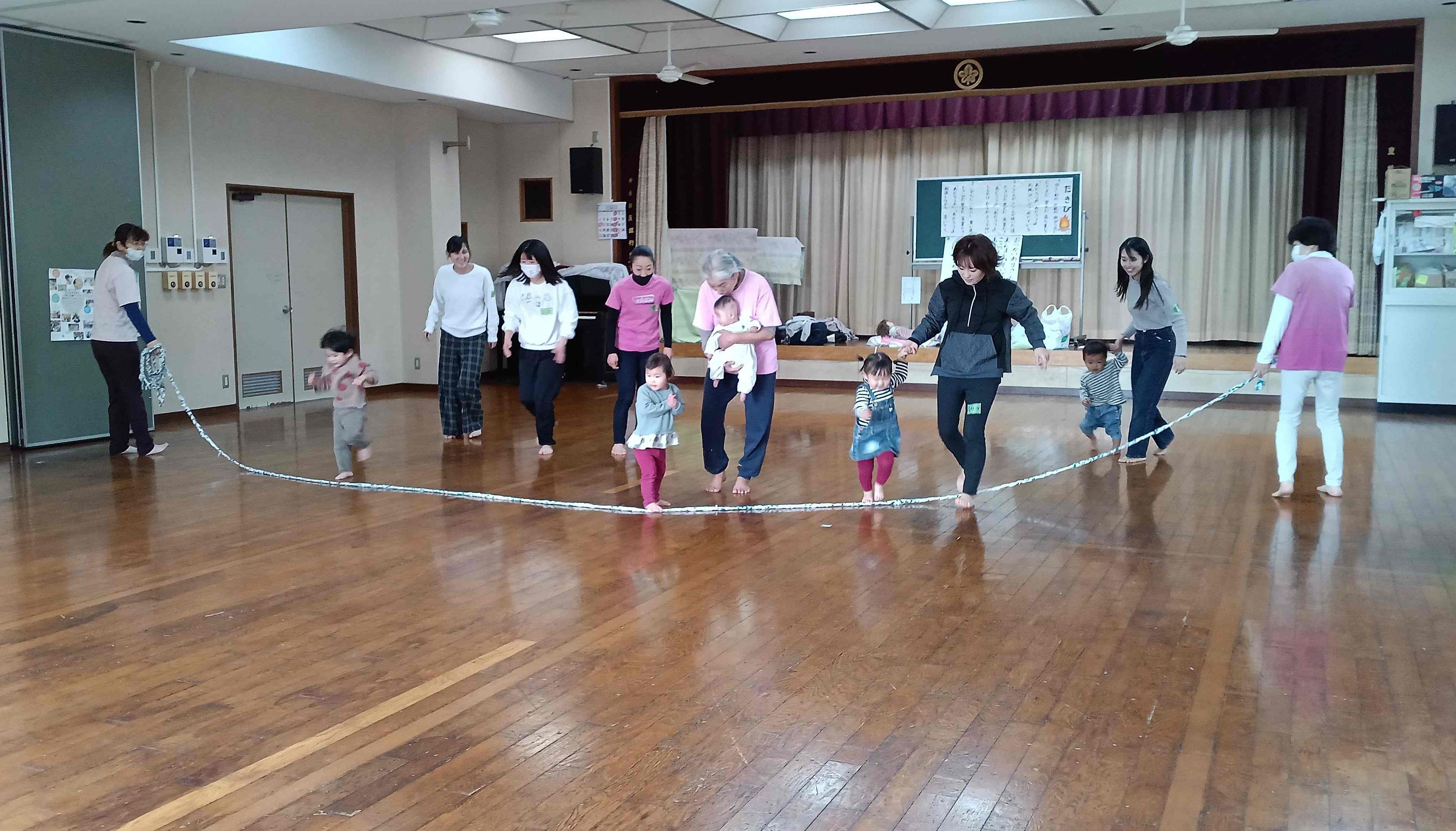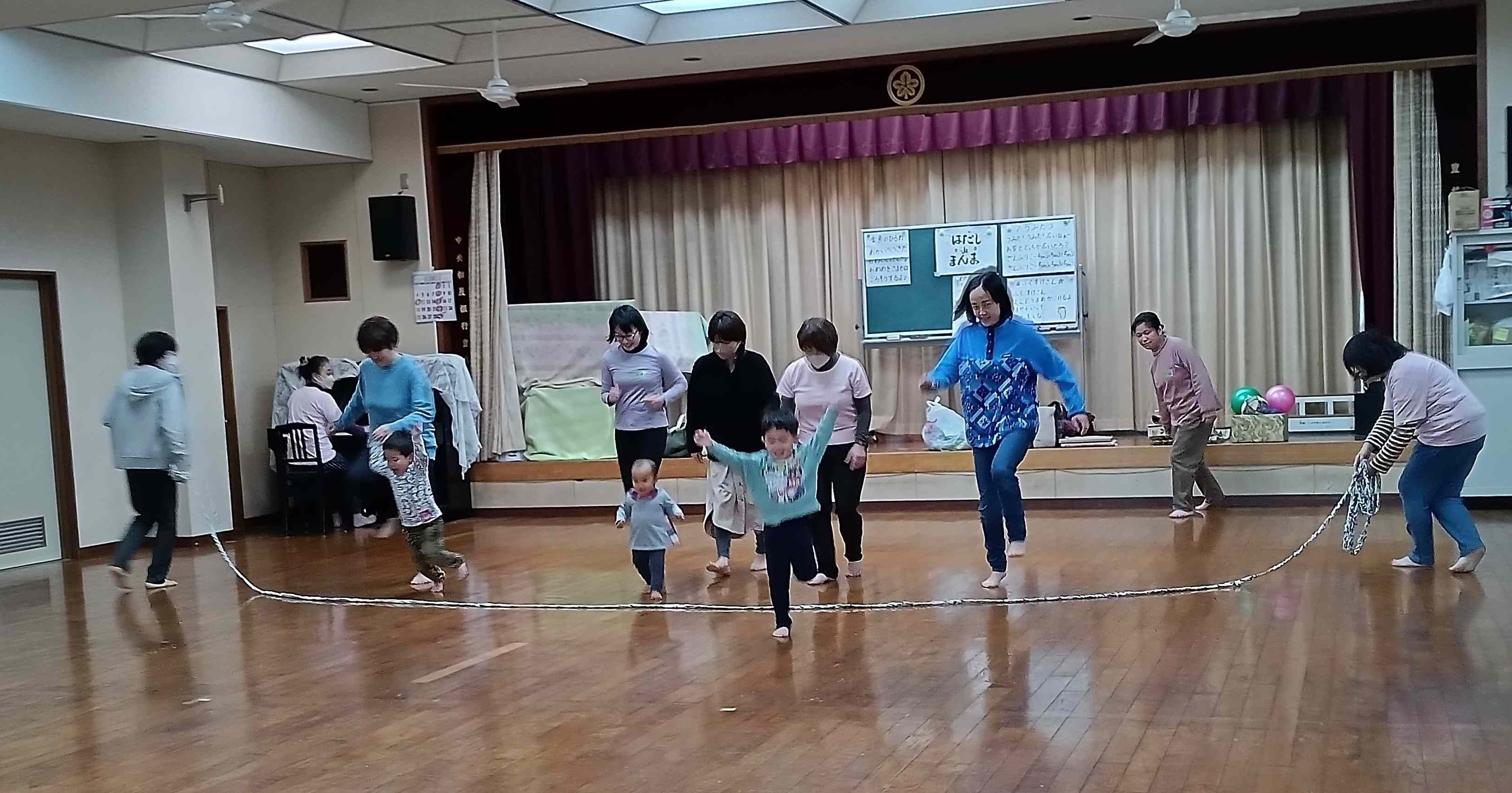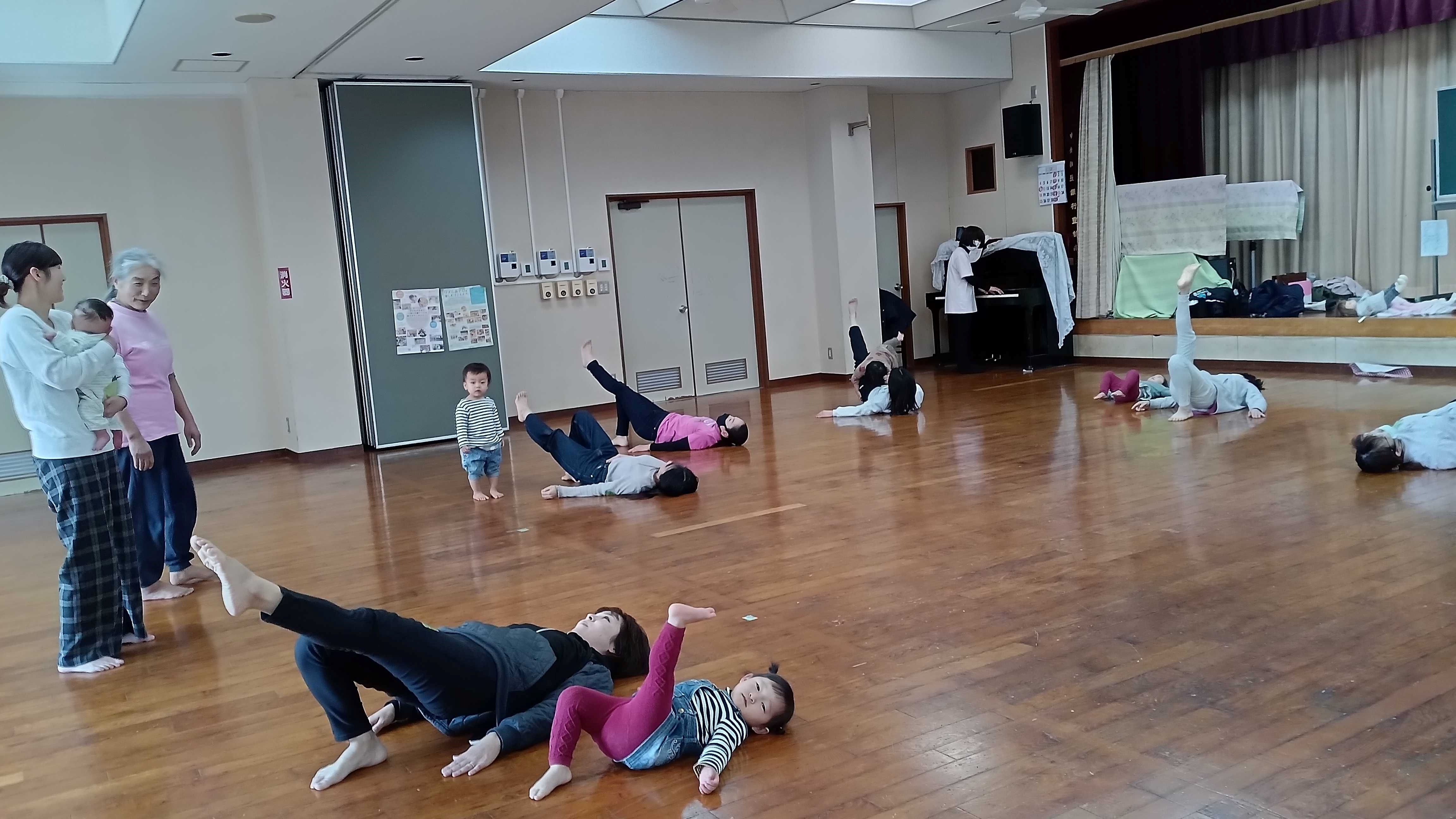 山田公民館の板の間でリズム