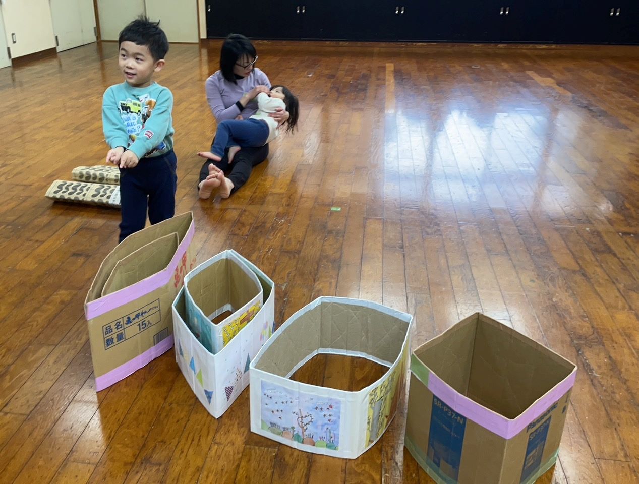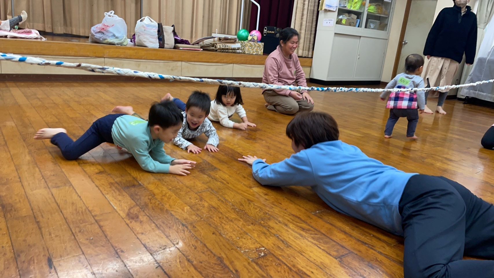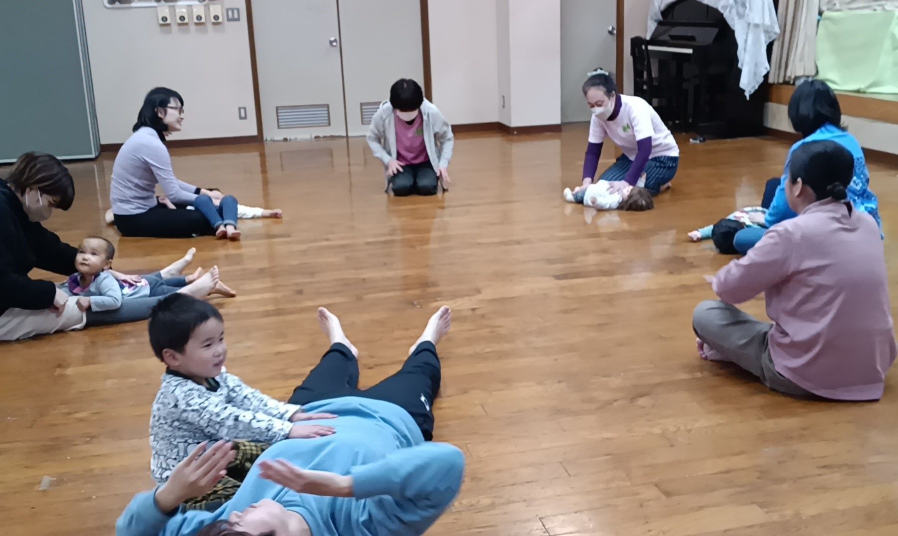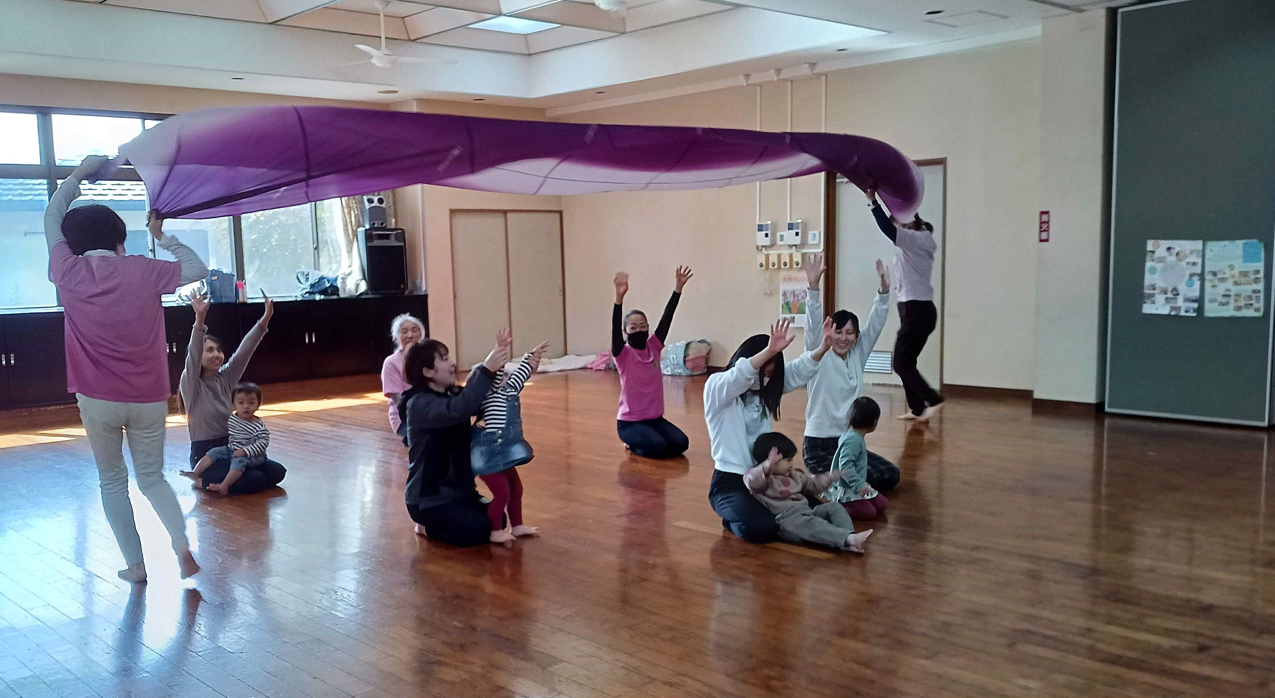 山田公民館の板の間でリズム