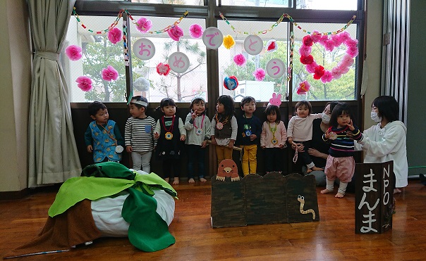 入園する子どもたちとささやかな「入園おめでとう会」を