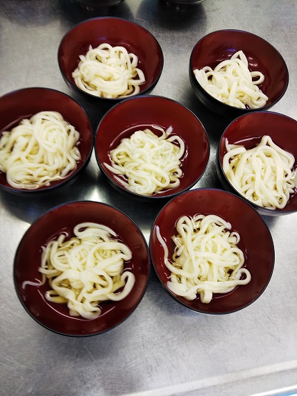 ビジターの横山さんに講師をしていただき、本場のさぬきうどん作りに挑戦。