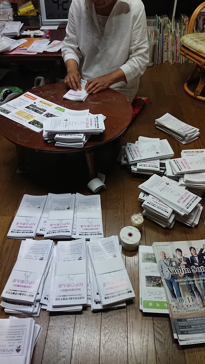 事務所にて刷り上がってきた、カラー版・A4サイズを三つ折りして、