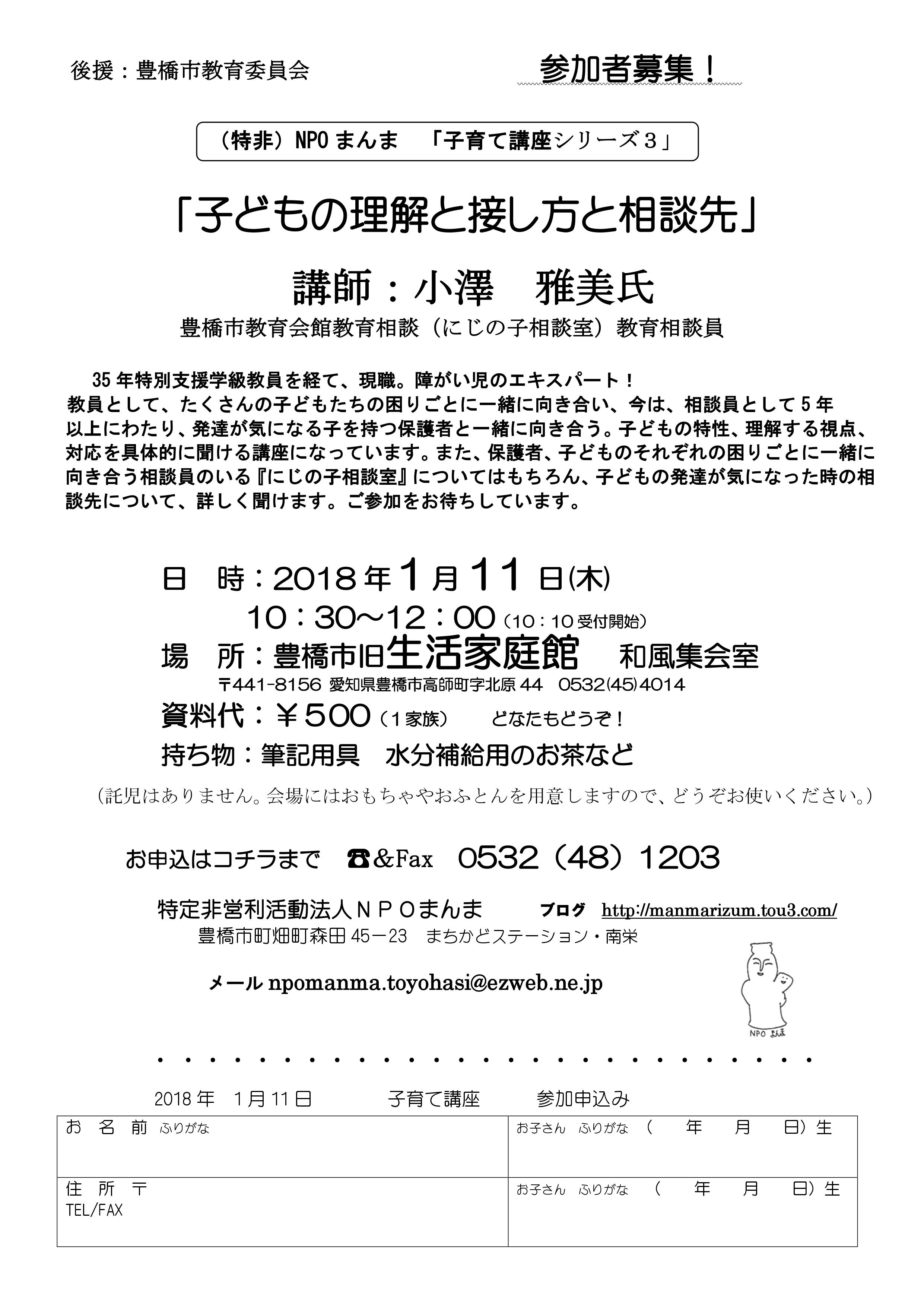 (特非)NPOまんまの子育て講座 ご参加をお待ちしています。