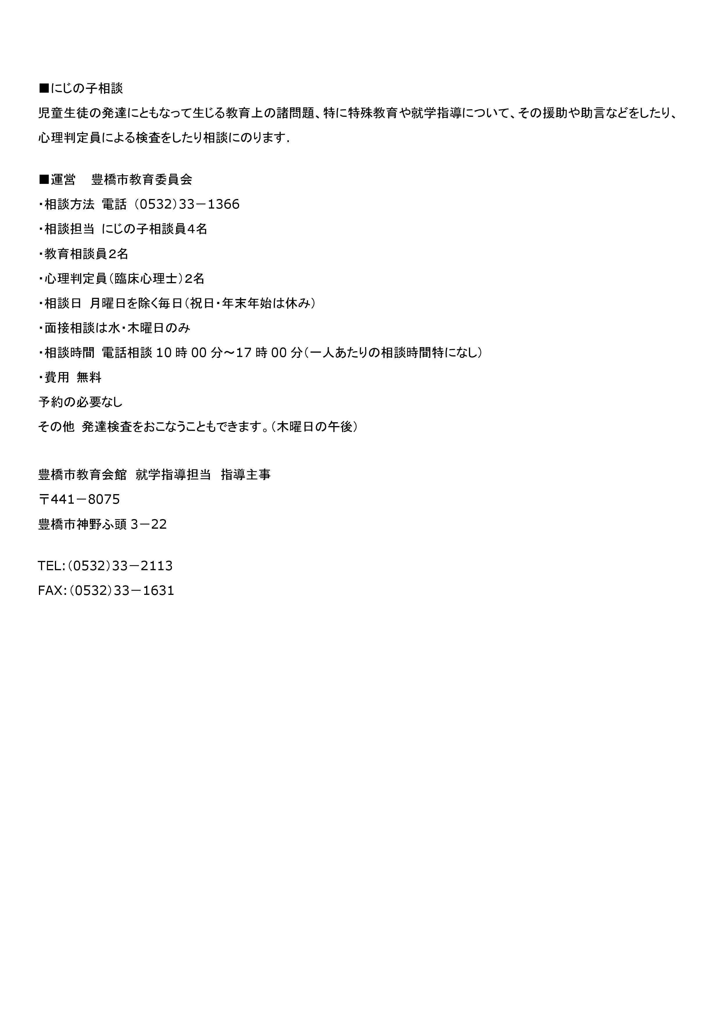 子どものそれぞれの困 りごとに一緒に向き合う相談員のいる『にじの子相談室』