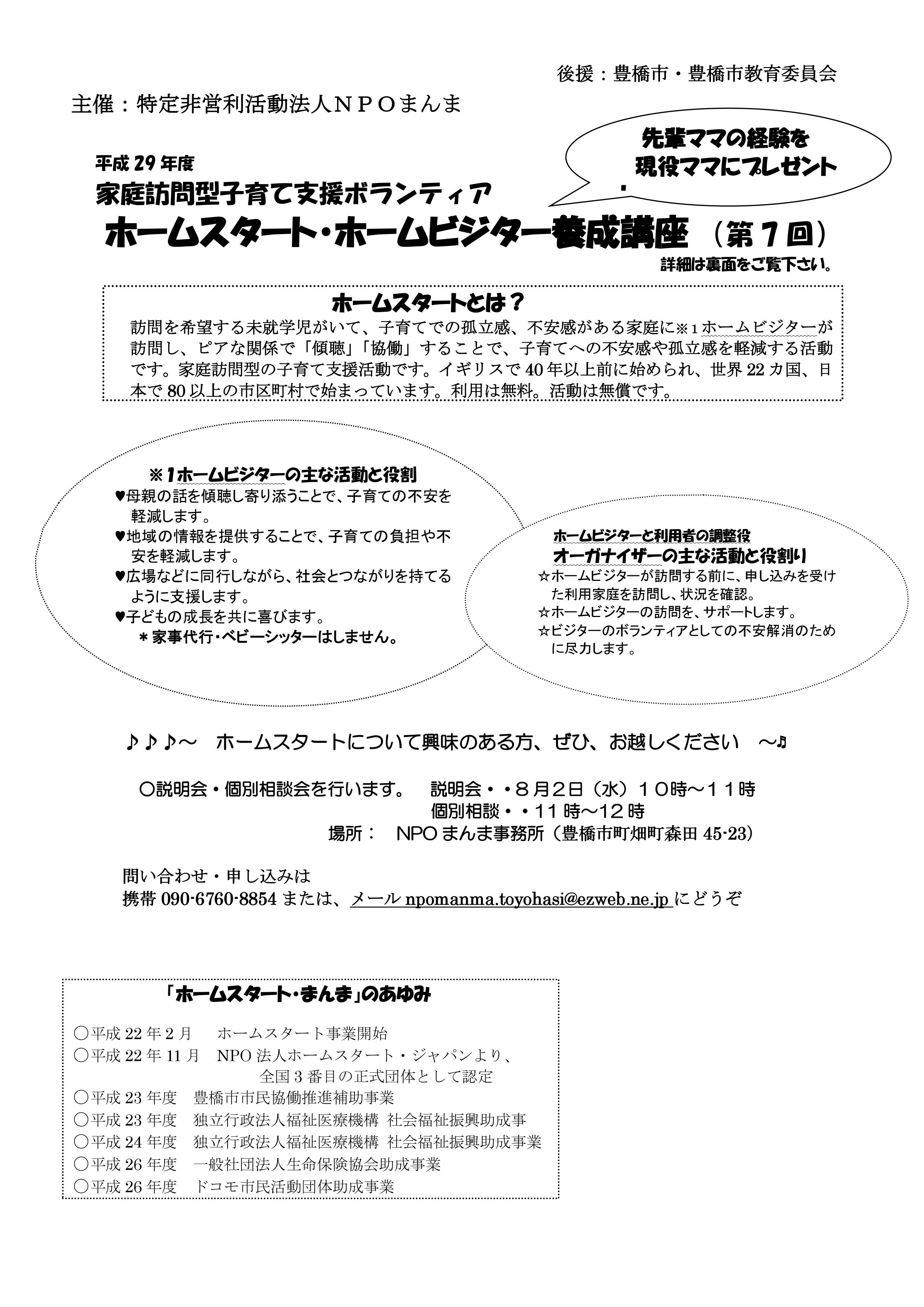 開催します。又、8月2日(水)には、ームスタート説明会・個別相談会を行います。