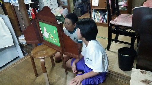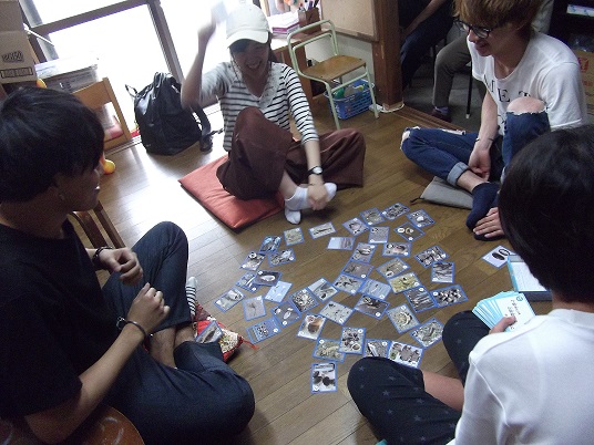 8名のボランティアスタッフは、板の間で、9名の子どもたちと遊んだり、
