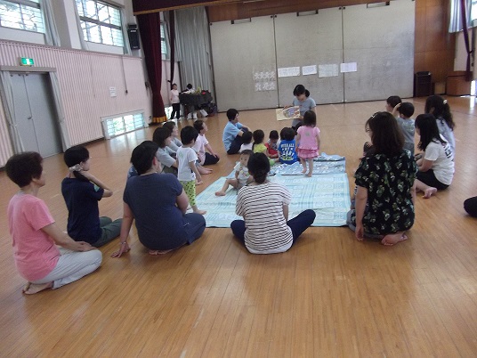 絵本の後で、皆さんの自己紹介。ボランティアスタッフ6名も紹介。