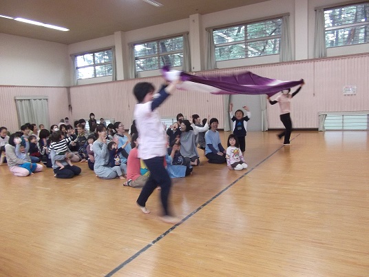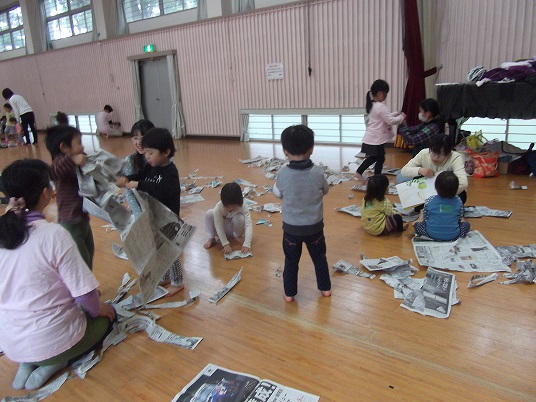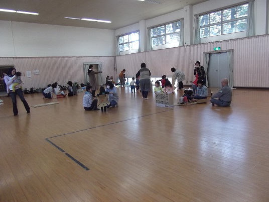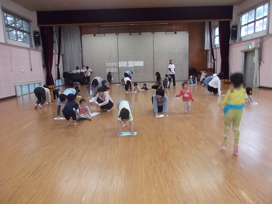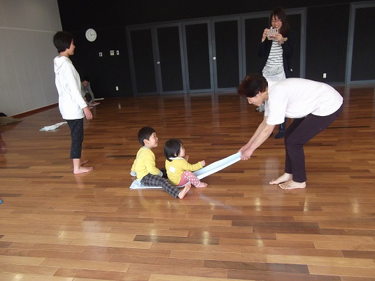 2階の板張りのスタジオでは、雑巾あそびを2回行いました。