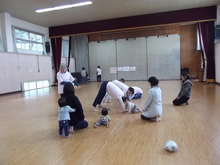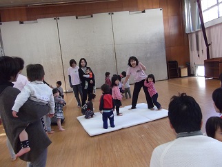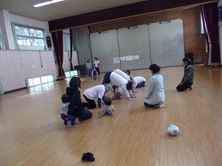 ママたちは、上の子どもとリズムを楽しんいましたね。