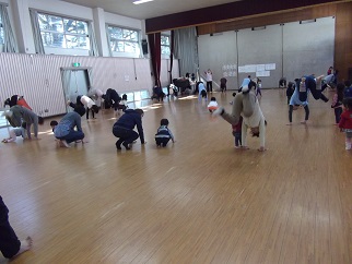 子どもたちの歓声が板の間の大集会室に響き渡りました。