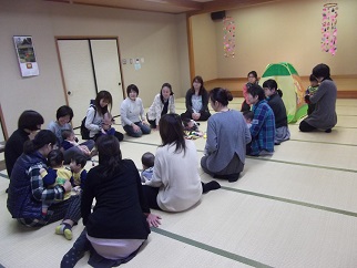 つつじが丘校区市民館 和室に、ママとツインズの皆さんが