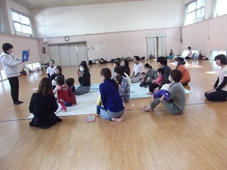 講座の前、縄跳び、ボール、体育館をはだしで遊び回りました。