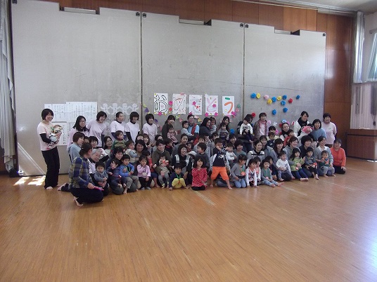 いつものまんまリズムで遊んだ後、入園する子どもたちの