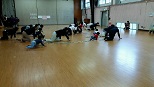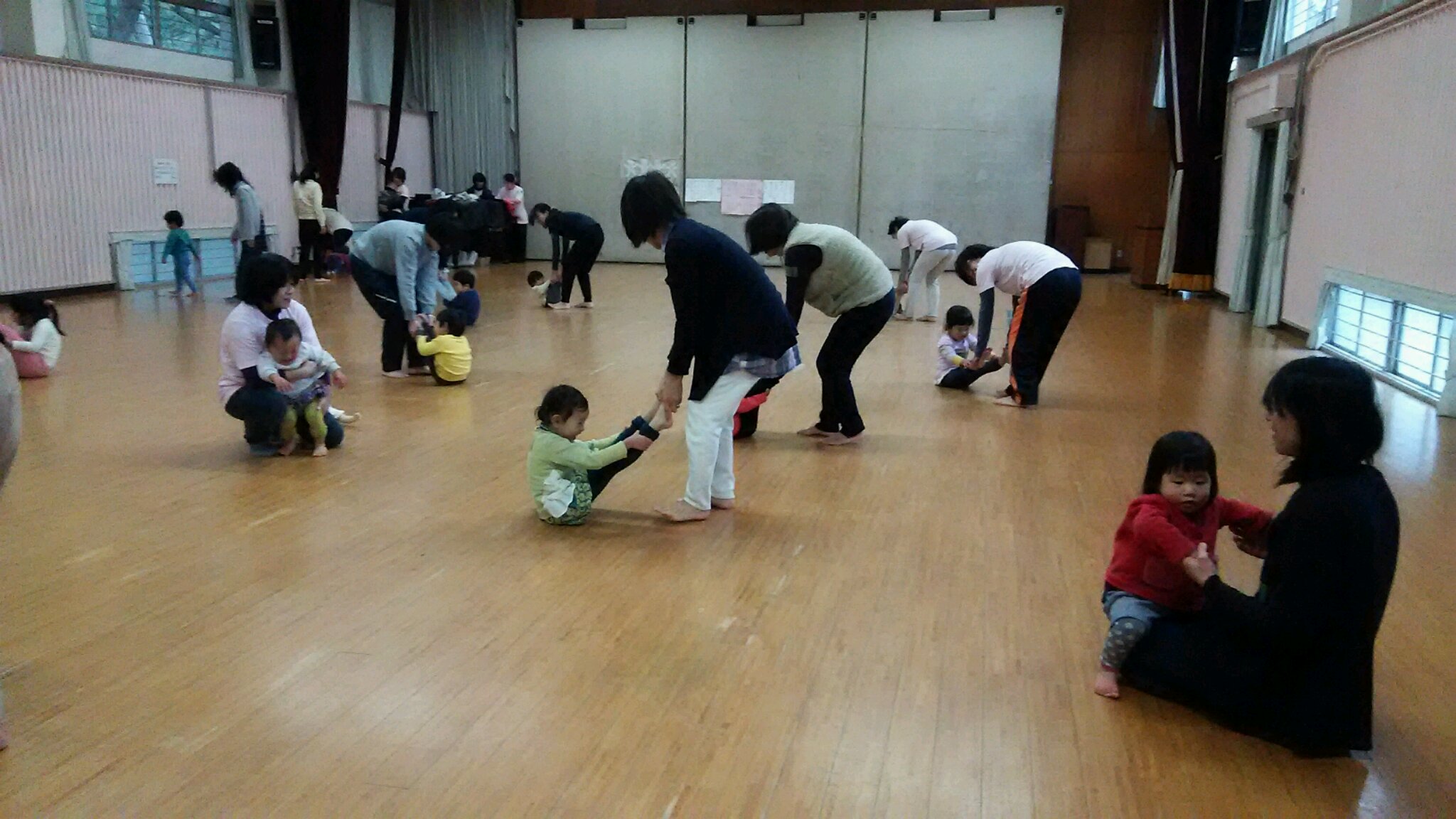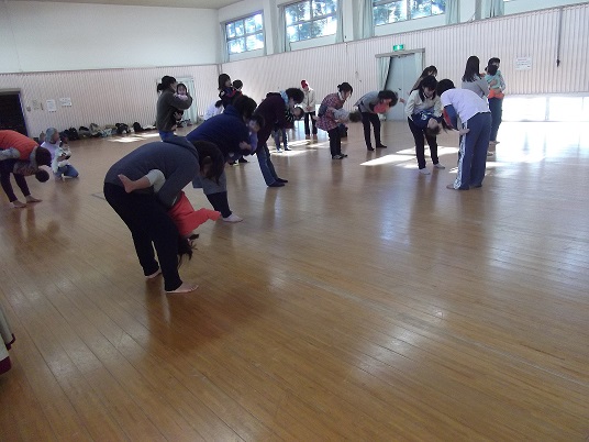 皆さんと、ひろーい板の間いっぱいに使って、素足になり、