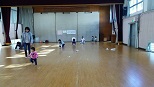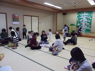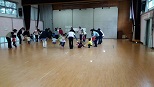 雑巾がけ、布ボールあそびから始まり、みんなで輪になって