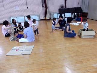 豊橋で唯一の乳幼児がはだしで走り回ることができる「木の床」の体育館で。