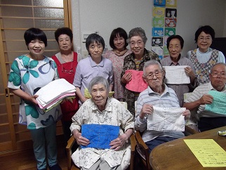 95歳の三ツ矢志づゑさんはじめ、皆さんの達者な仕事で、色とりどりの雑巾