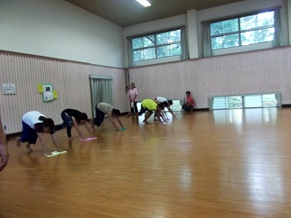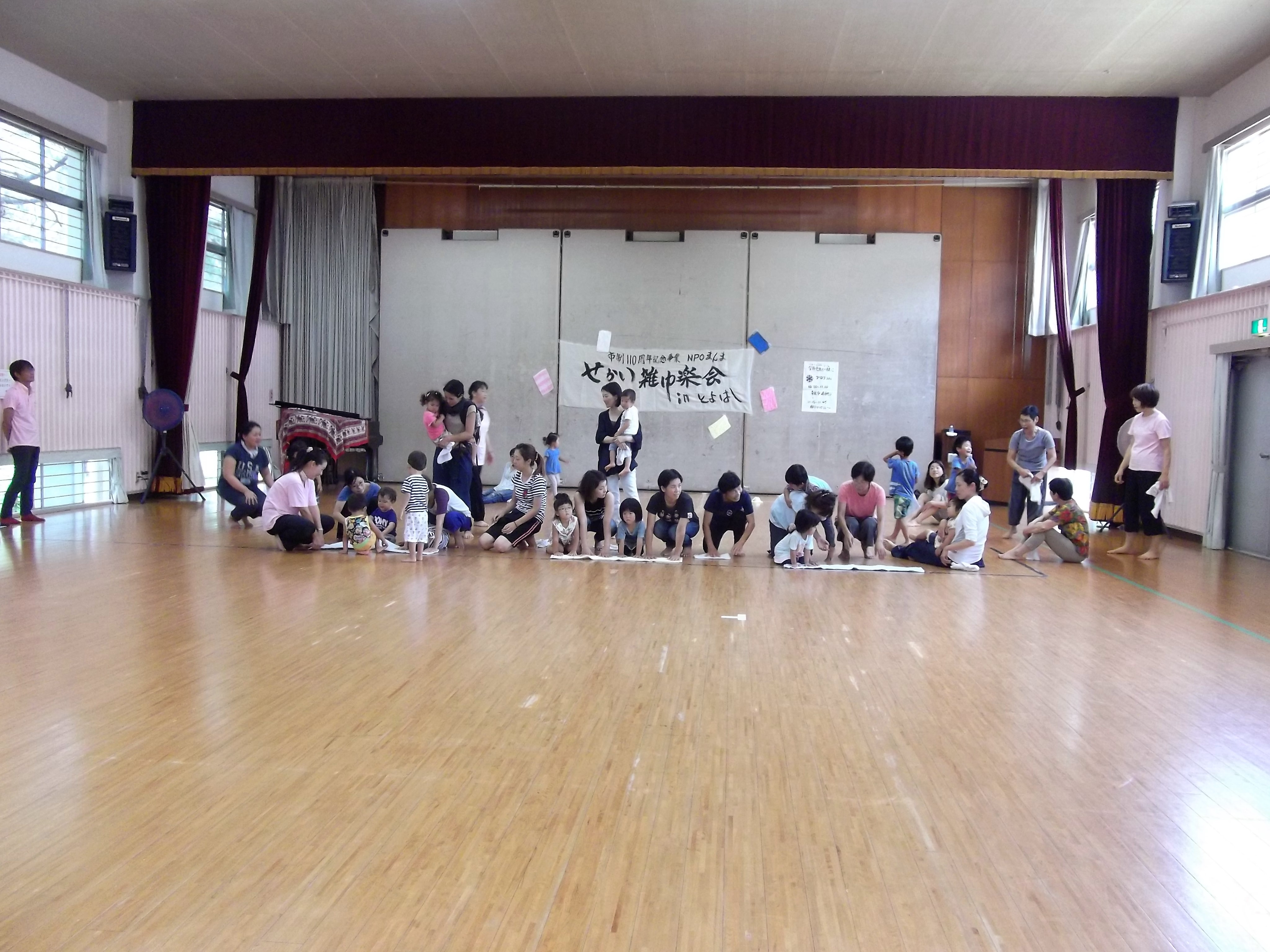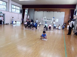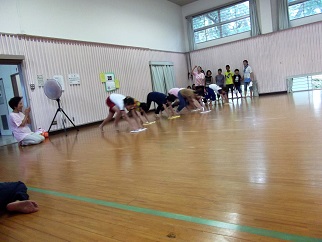 午前中の旧生活家庭館の大集会室で開催の「はだしde雑巾がけリレー」