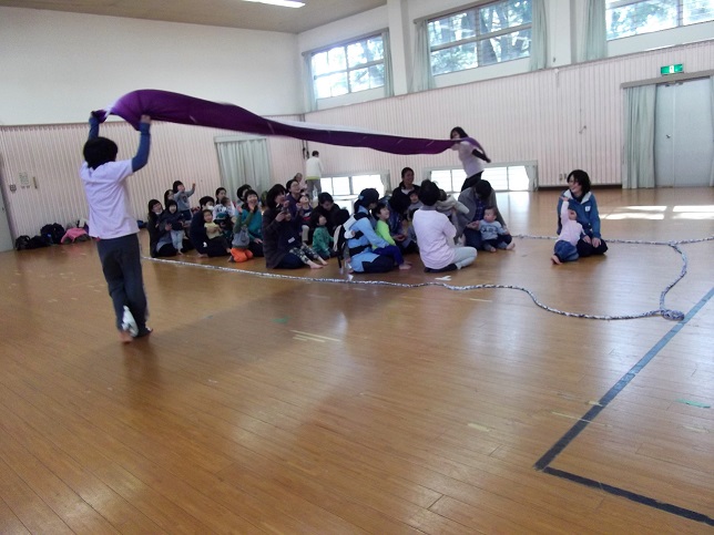 中でも布縄や、風呂敷をつなげて波をする「海だ海だ」も人気です。