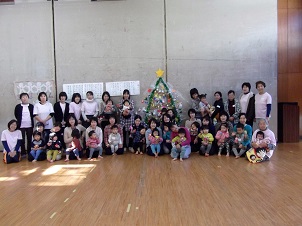 みんなでクリスマスツリーを飾り、サンタさんよりのプレゼント。