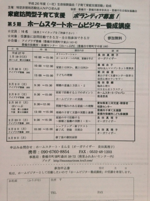 豊橋のホームスタートが、[ホームスタートジャパン]のホームぺージに載っています。